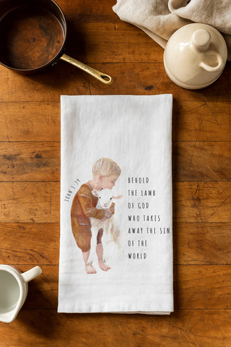 Watercolor Lamb of God Tea Towel – Christian Kitchen Decor - Scripture