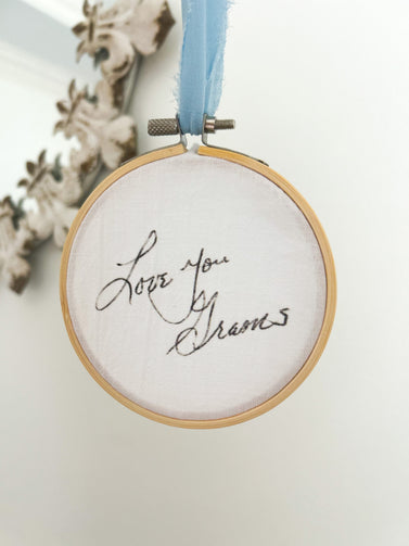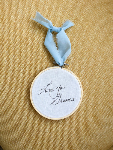 All you need is a picture of your loved one's handwriting to make the most special keepsake. Even a piece of your child's artwork would make an adorable Christmas ornament to save for years to come in a cute and stylish presentation. Just send me a message with your image attached and I will do the rest. When placing your order, you can choose your ribbon color from the drop down menu. These round ornaments have a 4" diameter. Please send me a message if you have any questions. Be sure to email your image or scan to colormeeden.custom@gmail.com