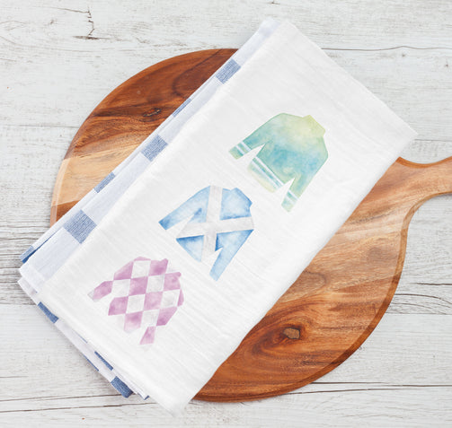 Tis the season for everything KENTUCKY DERBY! These watercolor painted silks are my artwork that I had printed on flour sack towels. They will make the perfect addition to your kitchen to get you in the derby spirit. These cuties are also a GREAT hostess gift.