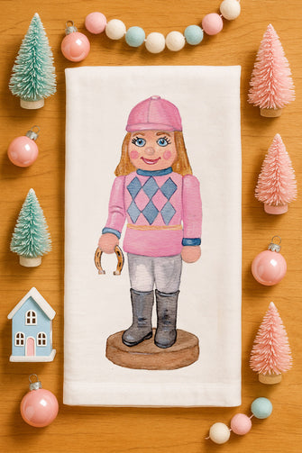 Bring a touch of whimsical equestrian charm to your kitchen with this Jockey Nutcracker Tea Towel, featuring my original watercolor artwork. Inspired by classic wooden nutcrackers and the timeless beauty of the sport, this design blends cozy holiday nostalgia with a playful jockey twist—perfect for horse lovers, equestrians, and festive decorators alike.