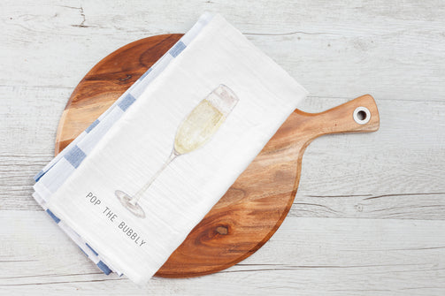 Great gift to bring for a celebration and when champs is in order. POP this tea towel on over to someone worth celebrating with.
